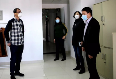 每到一�(gè)部室,許緘濤都向部室�(fù)�(zé)人詳�(xì)了解職工的到崗情況、體溫癥狀�(jiān)�(cè)情況、返京人員信息排查情況等,問(wèn)一�(wèn)職工的家庭住址、出行方式等,叮囑他們一定要注意分散辦公,勤洗手、多通風(fēng),做好�(gè)人防�(hù)措施�