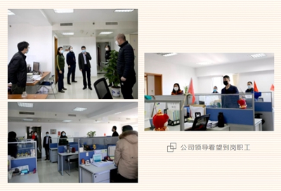 2�17日,公司黨委�(shū)�、董事長(zhǎng)許緘�,副總經(jīng)理田偉,總經(jīng)理助�、董事鄭薇到公司總部各部室檢查指�(dǎo)疫情防控工作落實(shí)情況,并向到崗職工送來(lái)了關(guān)懷和慰問(wèn)�
