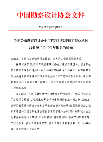 公司躋身勘察設計行業(yè)項目管理和工程總承包百名行列�