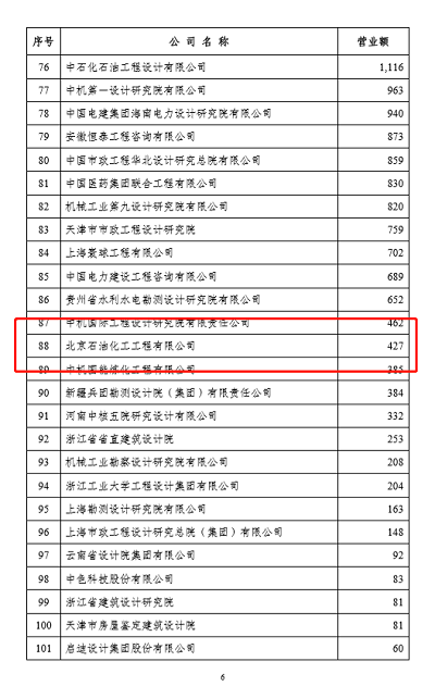 近日,中國勘察設計協(xié)會發(fā)布了《關于公布勘察設計企�(yè)工程項目管理和工程總承包營業(yè)額二0�0年排名的通知�,北京石油化工工程有限公司獲工程總承包營�(yè)額排名第52�、工程項目管理排名第88��