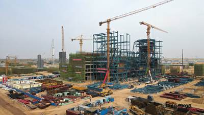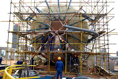 值得一提的�,項(xiàng)目核心乙醇裝置長周期�(shè)備陸�(xù)交貨到場安裝就位;土建施工總體完�73%,主要建筑物開始裝修,落地設(shè)備基�(chǔ)交付安裝,壓縮機(jī)廠房及其基礎(chǔ)施工正在按計劃�(jìn)�;裝置安裝工作全面推�(jìn)�7臺反�(yīng)器全部安裝完�,核心塔器正�(jìn)行現(xiàn)場安裝攻�(jiān)。與此同�,熱動力站也在快馬加鞭的�(jìn)�,目前鍋爐汽輪機(jī)房主體結(jié)�(gòu)施工和裝修正已同步啟��1號鍋爐鋼�(jié)�(gòu)安裝完成,鍋爐及附件基本安裝完畢�2��3號鍋爐正�(jìn)行鍋爐鋼�(jié)�(gòu)安裝,全力為今年11月鍋爐點(diǎn)火做好準(zhǔn)備�