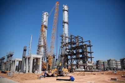 �(jìn)入伏天的榆神能化50萬噸/年煤基乙醇項(xiàng)目建�(shè)�(xiàn)�,一派大干快上的忙碌景象,現(xiàn)場超�2000名建�(shè)人員奮戰(zhàn)在施工一線�