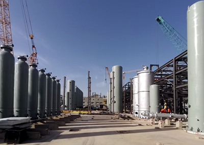 TSA/PSA成套包設備共35�,主要設備有吸附�、緩沖罐,此單元用于提純合成氣中的CO和H2,用壓縮機增壓后送入甲醇和乙醇裝置作為原料氣使用�