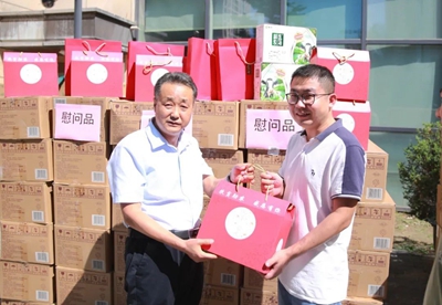 公司黨委副書記、工會主席景建民為職工送上牛奶、月餅、扶貧產(chǎn)品等慰問物資,感謝每位員工一直以來的辛勤付出�