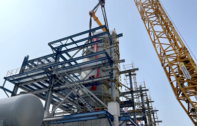 碳鑫乙醇項(xiàng)目首臺(tái)乙酸甲酯加氫反應(yīng)器交付并吊裝