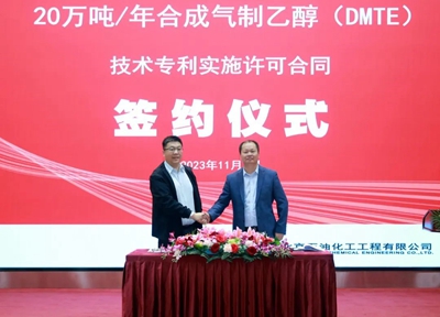 隨后,荊門(mén)源晗公司總經(jīng)理周�,延�(zhǎng)中科(大連)能源科技股份有限公司總經(jīng)理王輝代表雙方簽署了20�(wàn)�/年合成氣制乙醇(DMTE)技�(shù)�(zhuān)利實(shí)施許可合同并分別致辭。簽約儀式結(jié)束后,召�(kāi)了項(xiàng)目設(shè)�(jì)�(kāi)工會(huì),與�(huì)人員�(duì)�(shè)�(jì)方案�(jìn)行了深入交流�