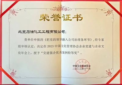 北京石油化工工程有限公司榮獲“黨建強企優(yōu)秀案例特等獎�。公司持�(xù)夯實黨建基礎,塑強黨建品�,筑牢紅色堡壘,打造特色黨建文�,營造濃厚黨建氛��
