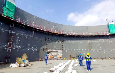 目前,項(xiàng)目主裝置鋼結(jié)�(gòu)安裝全面開始�4�(tái)LNG�(chǔ)罐施工安裝�(jìn)度穩(wěn)步展開,�(xiàng)目組已做好各�(xiàng)�(tǒng)籌工�,全力確保項(xiàng)目能夠高�、安全地推�(jìn)。(通訊�/孫亮� �/丁元�、孫亮亮�