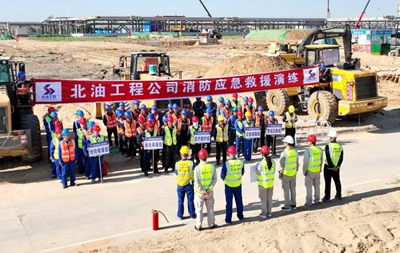 近日,由北京石油化工工程有限公司EPC總承包的陜西延長石油榆林凱越煤化有限責任公司50萬噸/年甲醇制乙醇項目開展動火作業(yè)消防應急演練。業(yè)主方、項目各參建方代表觀摩了此次演練。