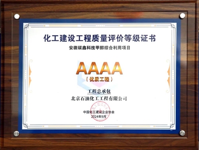 近日,由北京石油化工工程有限公司(簡(jiǎn)稱:北油工程)總承包的安徽碳鑫科技甲醇綜合利用�(xiàng)目乙醇聯(lián)合裝置,獲得2024年度,中�(guó)化工建設(shè)企業(yè)�(xié)�(huì)組織�(píng)選的化工建設(shè)工程�(zhì)量總承包�(yōu)�(zhì)工程和設(shè)�(jì)單位�(yōu)�(zhì)工程�