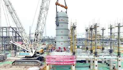 近日,由北京石油化工工程有限公司(簡稱“北油工程”)總承包的陜西延長石油榆林凱越煤化有限�(zé)任公�50萬噸/年甲醇制乙醇項目迎來重要�(jìn)展,首臺核心�(shè)備——乙酸甲酯加氫反�(yīng)器順利吊裝就��