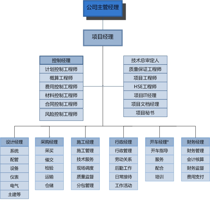 我公司擁有完善的項目管理標準體系、先進的項目管理軟件和豐富經(jīng)驗的項目管理人員,在項目管理理念、系統(tǒng)、模式和工具上完成了與國際接軌。在項目執(zhí)行過程中,建立了在項目經(jīng)理領導下,從項目設計、采購到施工管理的 EPC 、 EPCM 和 PMC 等全方位用戶服務體系,為國內(nèi)外用戶提供優(yōu)質(zhì)的工程服務。